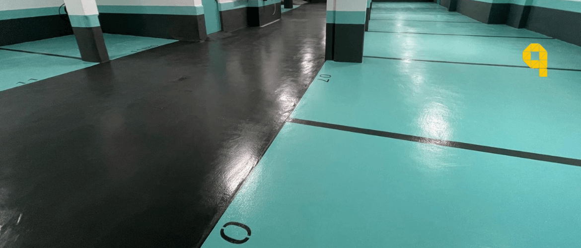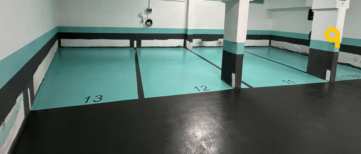 Una vez acondicionado el soporte, se ha aplicado nuestro sistema parking con acabado en poliuretano, especialmente diseñado para garajes y zonas de tráfico rodado.