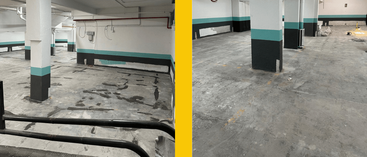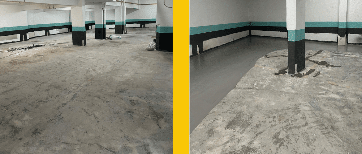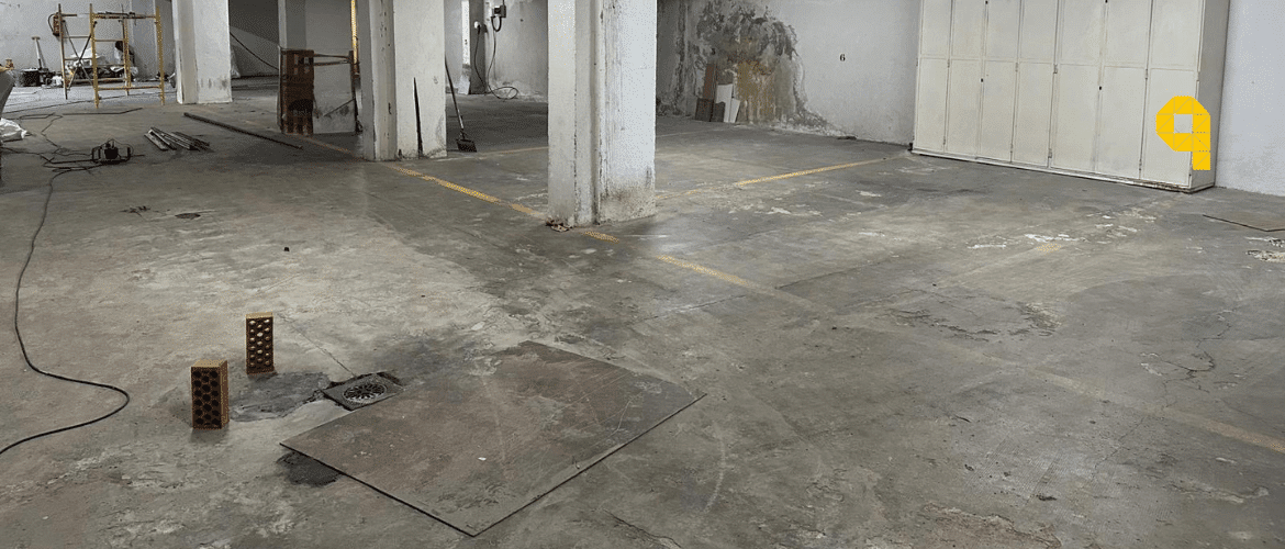 En esta obra abordamos la rehabilitación integral de un garaje comunitario que presentaba un pavimento de mortero antiguo muy deteriorado, con múltiples zonas en mal estado, grietas visibles y pérdida generalizada de prestaciones tanto técnicas como estéticas.