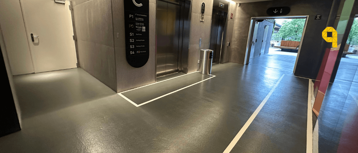 El resultado es un pavimento técnico, seguro y visualmente integrado, preparado para el uso real de los núcleos de ascensores y alineado con el nivel de exigencia de un edificio como Torre Caleido.